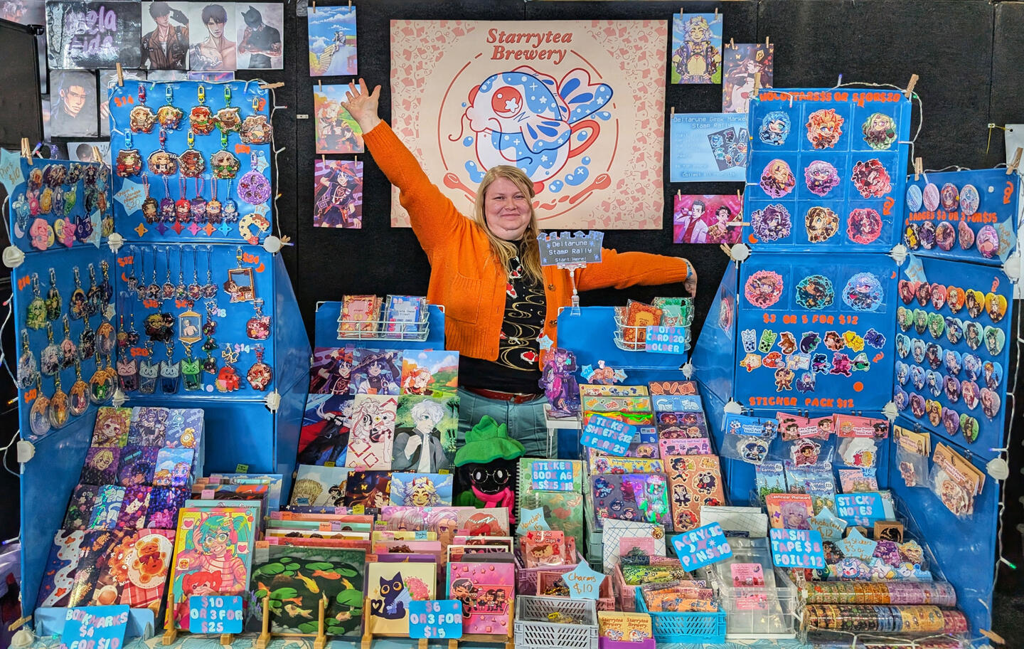 Aussie artist drawing cute and colourful artworks; also making adorable designs for merchandise for artist alleys and own store.